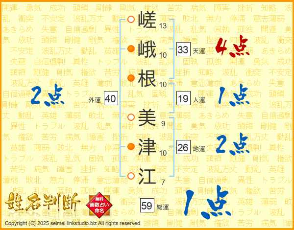 嵯峨根美津江さんの総運は59画の1点!