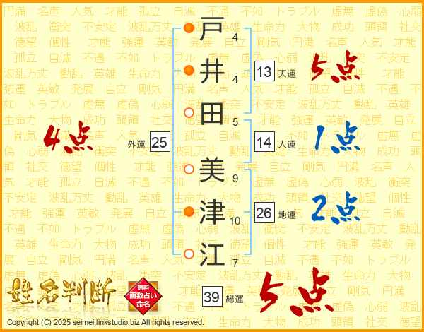 戸(4画)井(4画)田(5画) 美(9画)津(10画)江(7画)
