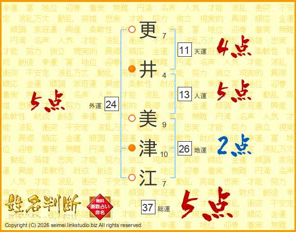 更(7画)井(4画) 美(9画)津(10画)江(7画)