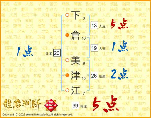 下倉美津江さんの総運は39画の5点!