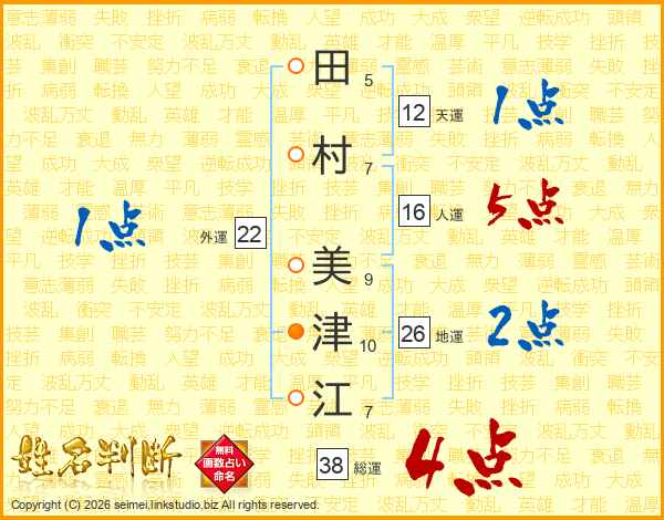 田村美津江さんの総運は38画の4点!