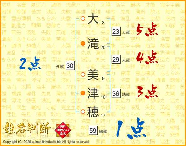 大滝美津穂さんの総運は59画の1点!