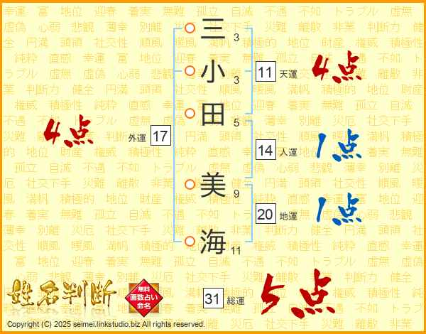 三小田美海さんの天運は11画の4点!