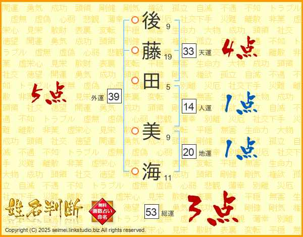 後(9画)藤(19画)田(5画) 美(9画)海(11画)