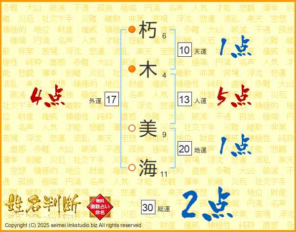 朽木美海さんの総運は30画の2点!