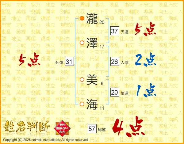 瀧澤美海さんの天運は37画の5点!