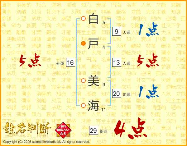 白戸美海さんの総運は29画の4点!