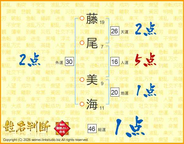 藤尾美海さんの総運は46画の1点!