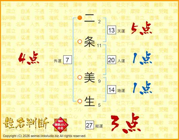 二条美生さんの総運は27画の3点!