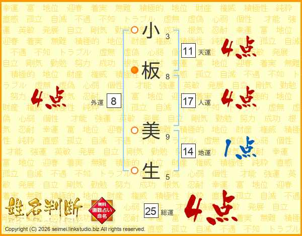小板美生さんの人運は17画の4点!