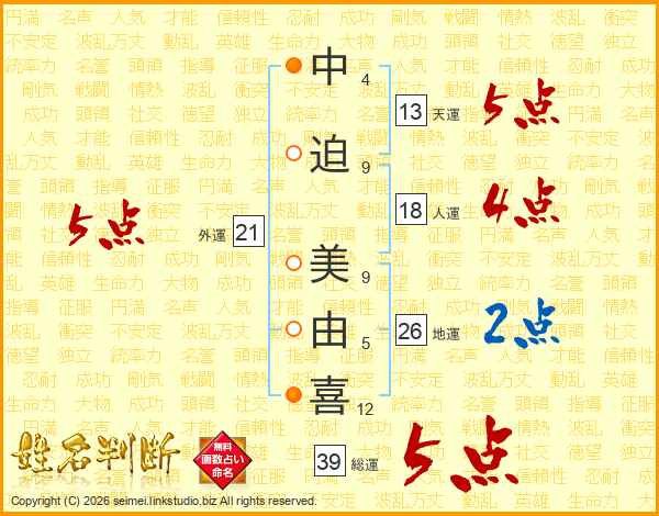 中迫美由喜さんの総運は39画の5点!