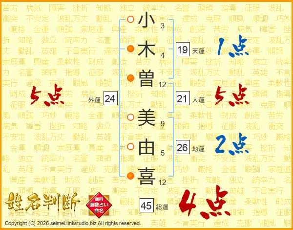 小木曽美由喜さんの総運は45画の4点!