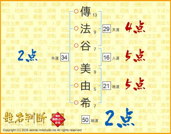 傳法谷美由希さんの地運は21画の5点!