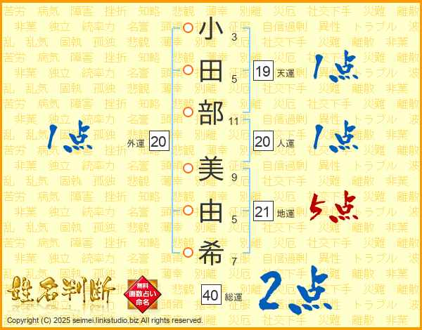 小田部美由希さんの地運は21画の5点!