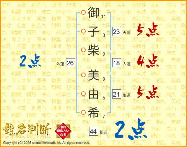 御子柴美由希さんの総運は44画の2点!