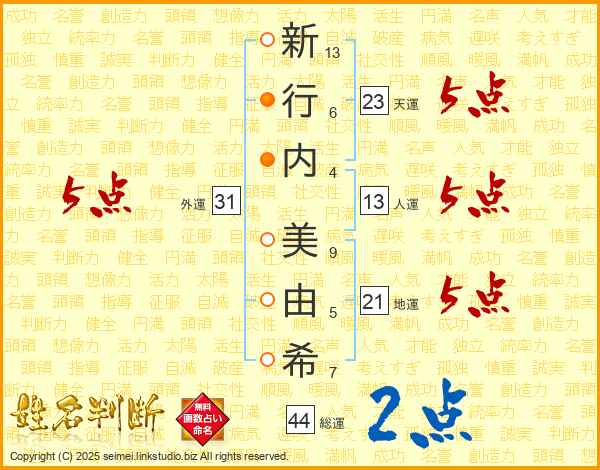 新行内美由希さんの総運は44画の2点!