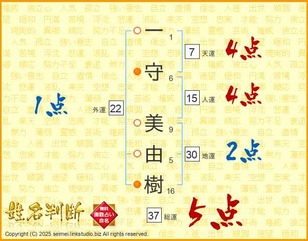 一守美由樹さんの総運は37画の5点!