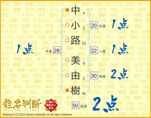 中小路美由樹さんの地運は30画の2点!