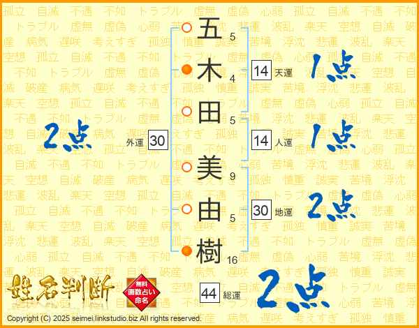 五木田美由樹さんの総運は44画の2点!