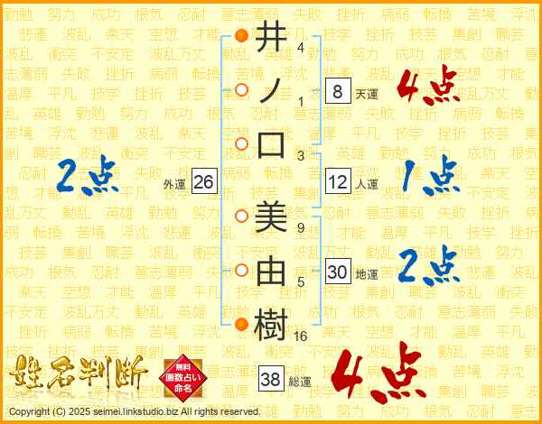 井ノ口美由樹さんの総運は38画の4点!