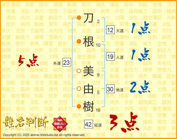 刀根美由樹さんの地運は30画の2点!
