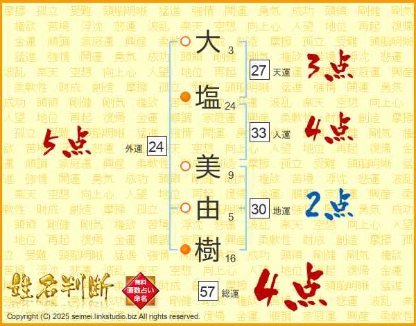 大塩美由樹さんの総運は57画の4点!
