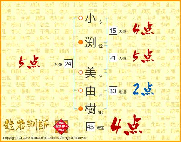 小渕美由樹さんの総運は45画の4点!