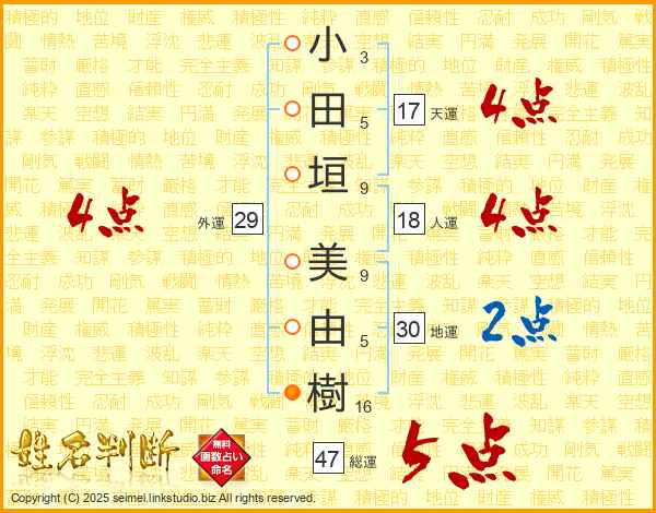 小田垣美由樹さんの総運は47画の5点!