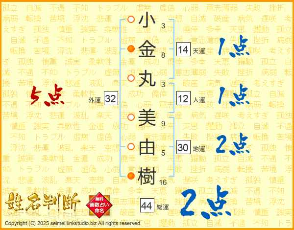 小金丸美由樹さんの外運は32画の5点!