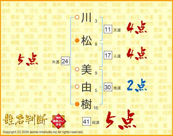 川松美由樹さんの総運は41画の5点!