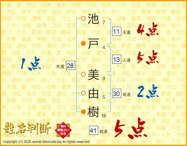 池戸美由樹さんの総運は41画の5点!