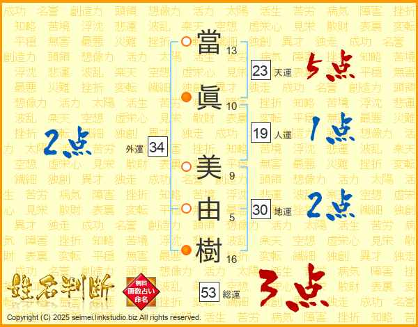 當眞美由樹さんの総運は53画の3点!