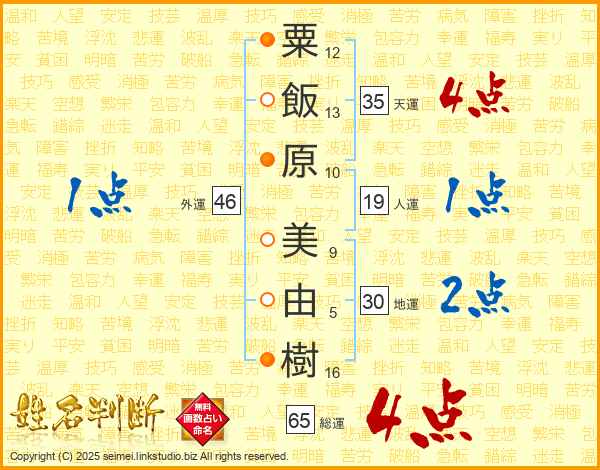 粟(12画)飯(13画)原(10画) 美(9画)由(5画)樹(16画)