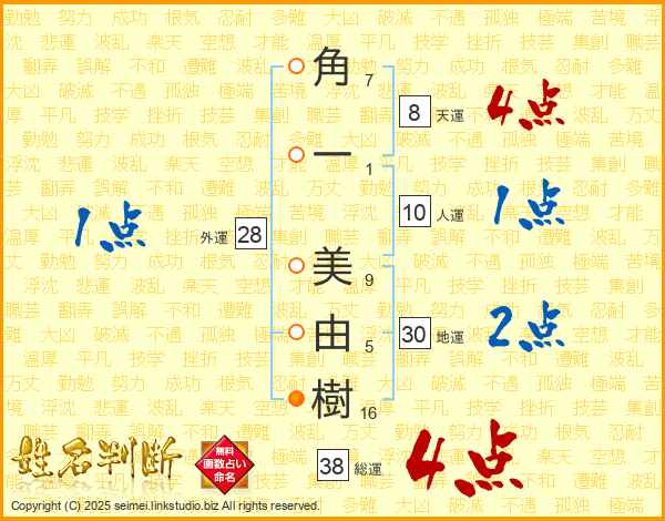 角一美由樹さんの総運は38画の4点!