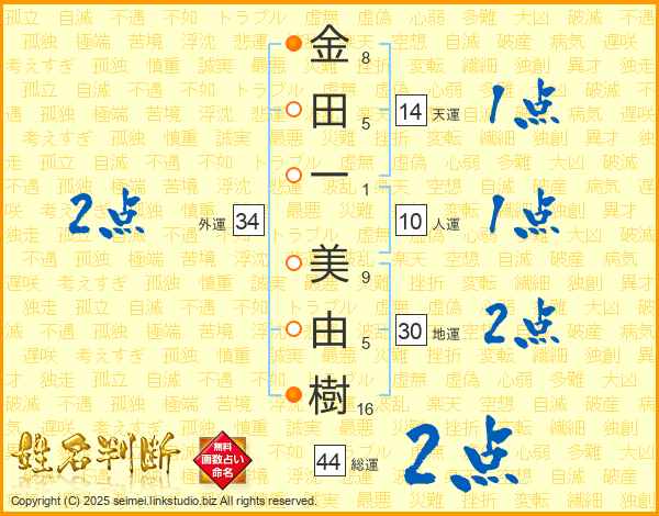 金田一美由樹さんの総運は44画の2点!