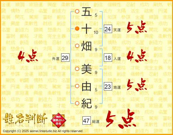 五十畑美由紀さんの総運は47画の5点!