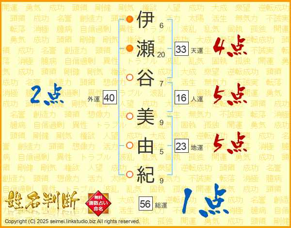 伊瀬谷美由紀さんの総運は56画の1点!