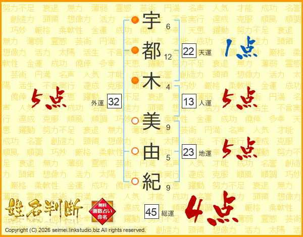 宇都木美由紀さんの総運は45画の4点!