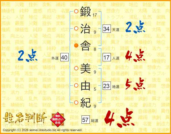 鍛治舎美由紀さんの総運は57画の4点!