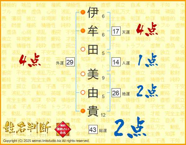 伊牟田美由貴さんの外運は29画の4点!