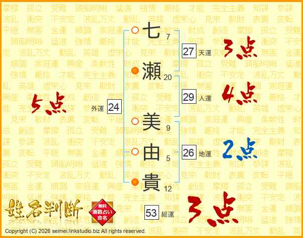 七瀬美由貴さんの総運は53画の3点!