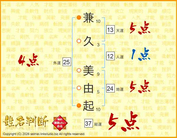 兼久美由起さんの総運は37画の5点!