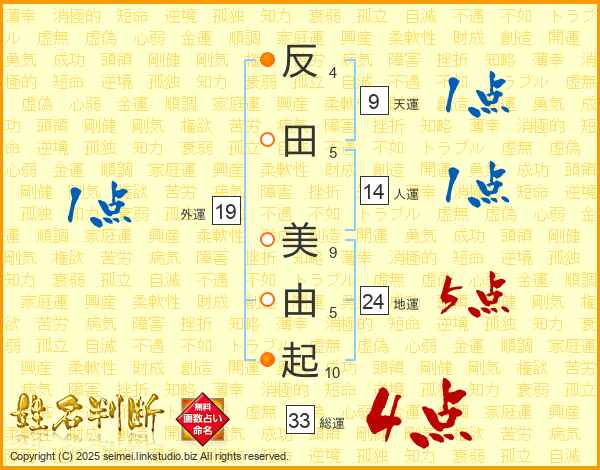 反田美由起さんの総運は33画の4点!