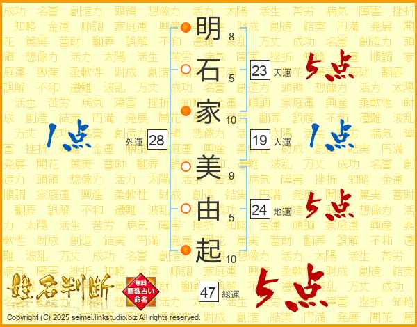 明石家美由起さんの総運は47画の5点!