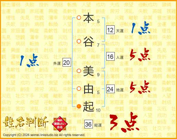 本(5画)谷(7画) 美(9画)由(5画)起(10画)