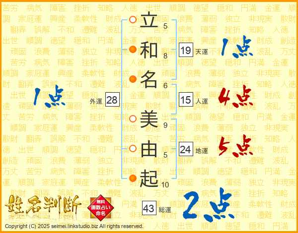 立和名美由起さんの総運は43画の2点!