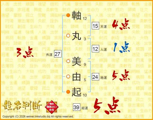 軸丸美由起さんの総運は39画の5点!