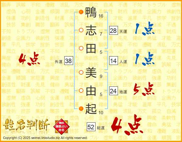 鴨志田美由起さんの総運は52画の4点!
