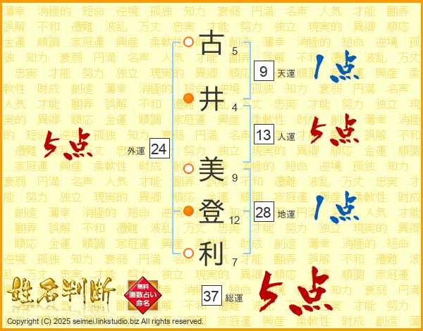古(5画)井(4画) 美(9画)登(12画)利(7画)