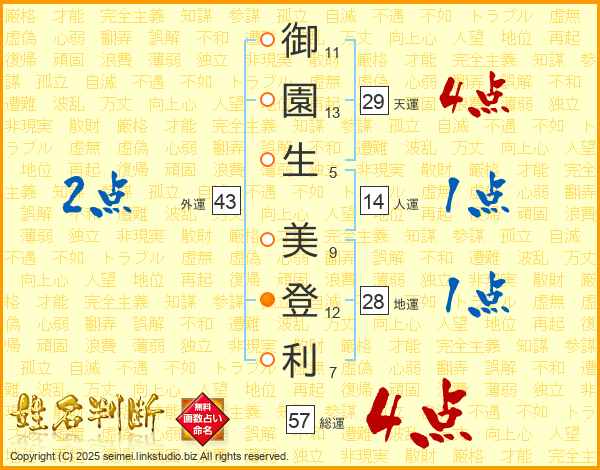 御園生美登利さんの総運は57画の4点!